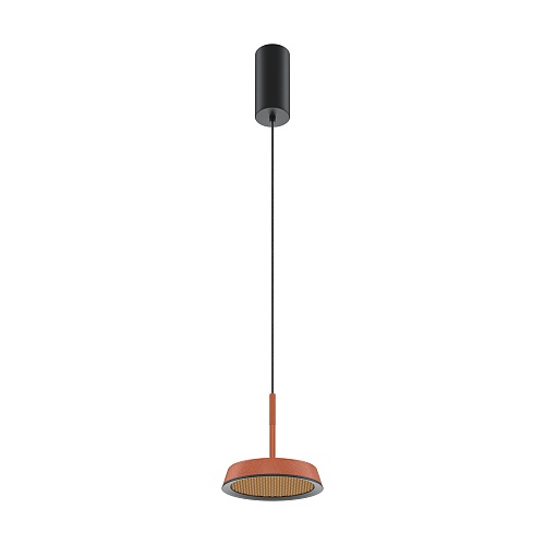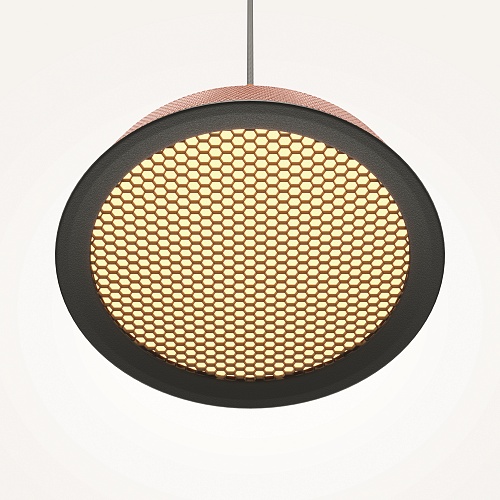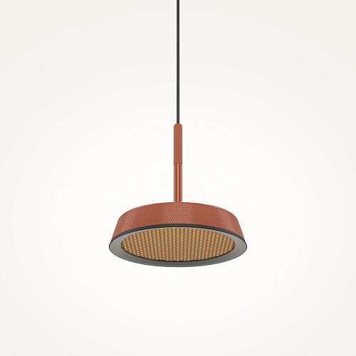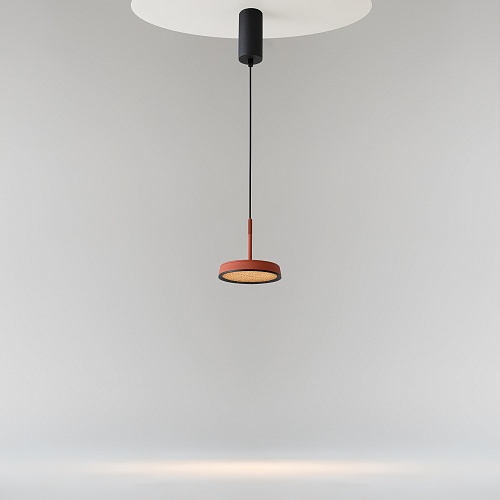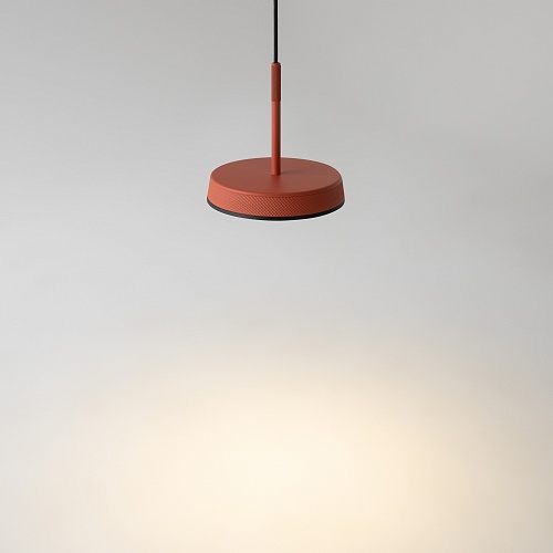 Металлический корпус, цветовая палитра - черный, белый, золото и терракотовый. Два вида плафонов: «таблетка» с графичным рельефом из ассиметричных линий; «таблетка» + идеально-гладкая металлическая «тарелка». Дизайн вдохновлен супрематической эстетикой. LED-источник света, цветовая температура - 3000К. Регулируемый провод - 3 метра.