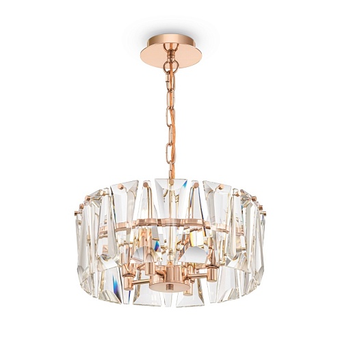 Материал арматуры – металл, оттенки – хром и золото. Декор – массивные крис таллы сложной огранки. Высота подвесных моделей регулируется длиной цепи. Источник света - лампа с цоколем Е14.