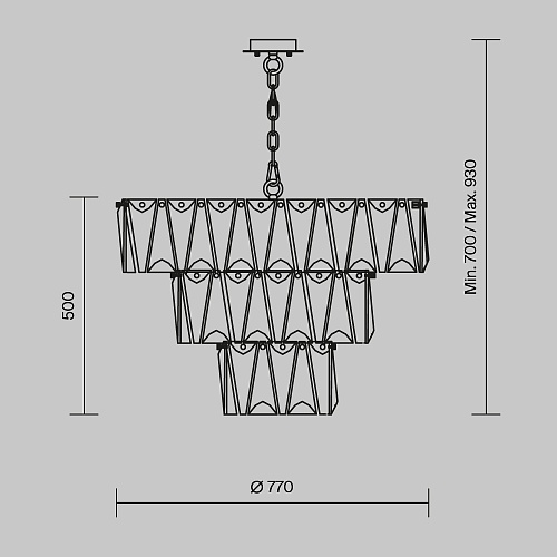Материал арматуры – металл, оттенки – хром и золото. Декор – массивные крис таллы сложной огранки. Высота подвесных моделей регулируется длиной цепи. Источник света - лампа с цоколем Е14.