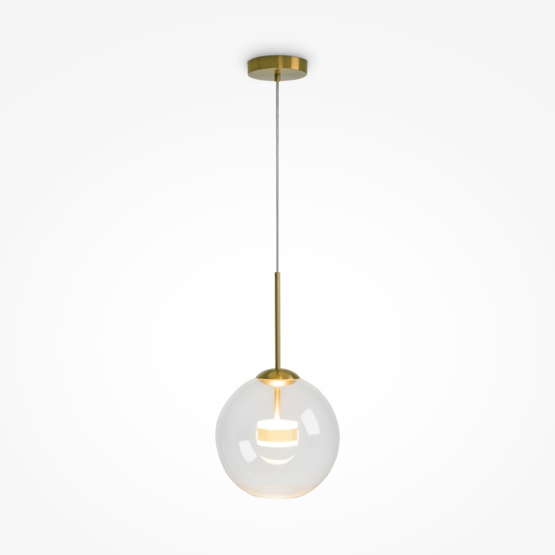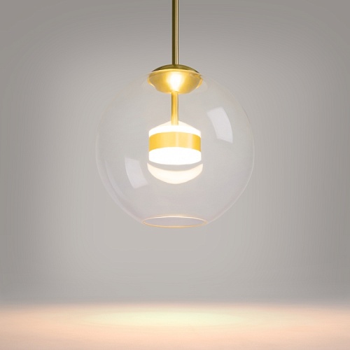 Материал арматуры – металл, цвет – матовое золото. Плафон из прозрачного выдувного стекла. LED-источник света. Регулируемая высота.