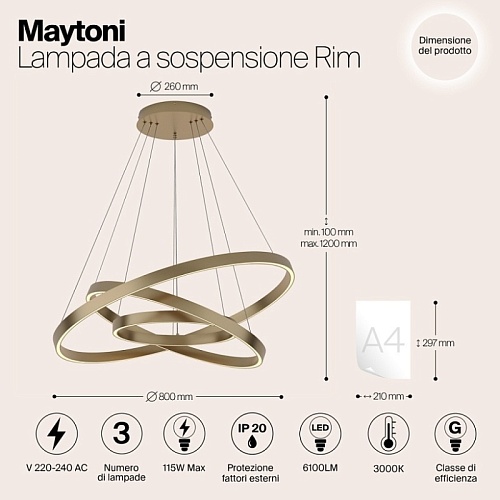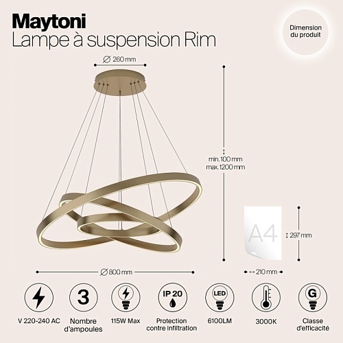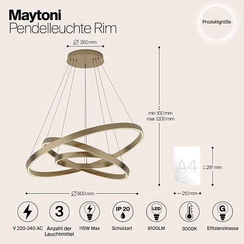 Характеристики Подвесной светильник Maytoni Rim MOD058PL-L100BS3K