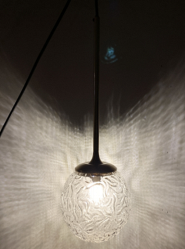 Арматура — металл, цвет — латунь. Плафоны — прозрачное стекло с эффектом муара. Высота подвесного светильника регулируется. Источник света — лампа с цоколем Е27.