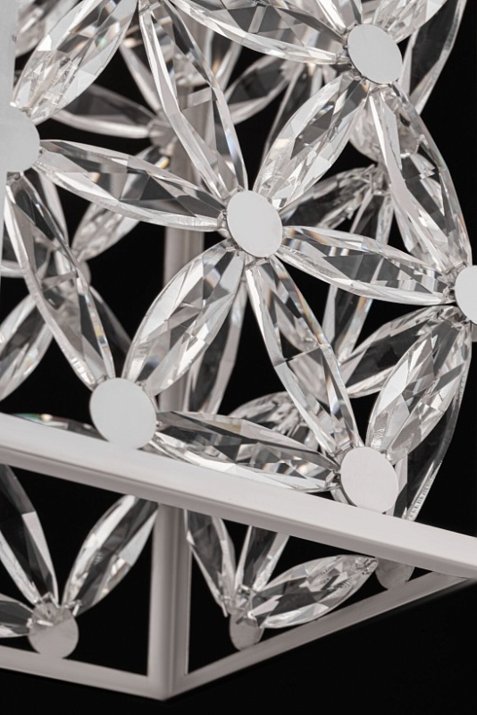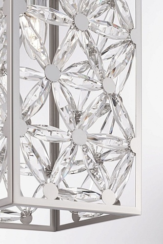 Светильники серии образованы множеством граненых кристаллов, соединенных между собой и закрепленных на раме из полированного металла. Являясь олицетворением престижа, элегантности и оригинального стиля исполнения, они будут жемчужиной освещаемого интерьера. Высоту подвесных светильников возможно изменить, регулируя длину цепи.