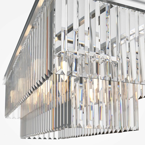 Арматура из металла в трех оттенках: латунь, хром, золото. Многоярусный декор. Подвески: прозрачное (арматура – хром, латунь) и янтарное (арматура – золото) стекло. Высота подвесных моделей регулируется.