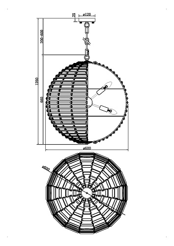 • Диаметр потолочной чаши (мм)