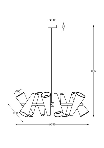 Металлическая арматура в двух оттенках: белый и черный. Плафоны-конусы выполнены из алюминия. Оттенки: белый, латунь. Рожки вращаются, можно менять направление света. Высота регулируется с помощью разборного центрального элемента.