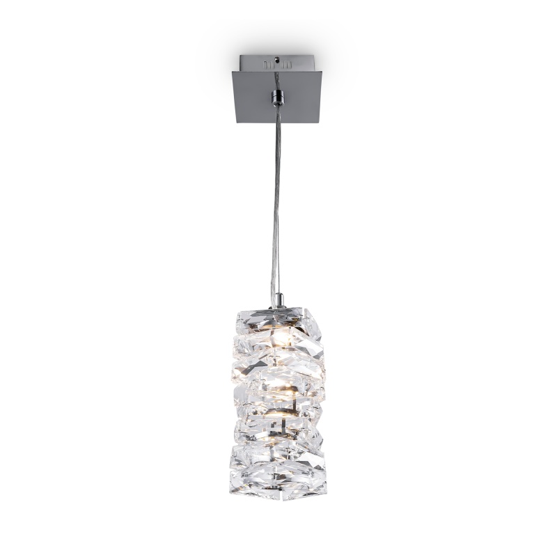 Арматура из нержавеющей стали и стекла, цвет арматуры – хром. Фактурный плафон с декором из стеклянного массива. Источник света – светодиоды с цветовой температурой 3000К.