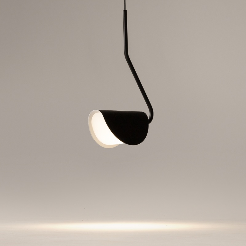 Арматура и плафоны из металла, цвет – черный. Оригинальная форма плафона с плавным контуром. Источники света скрыты под акриловым рассеивателем.