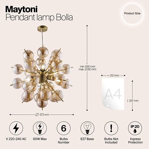 Характеристики Подвесной светильник Maytoni Bolla MOD133PL-06BS