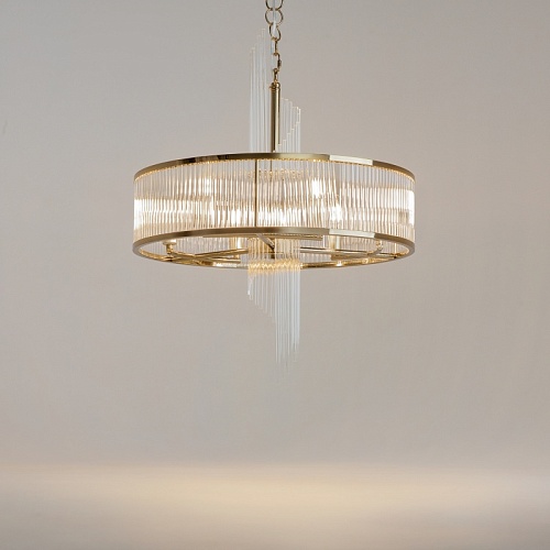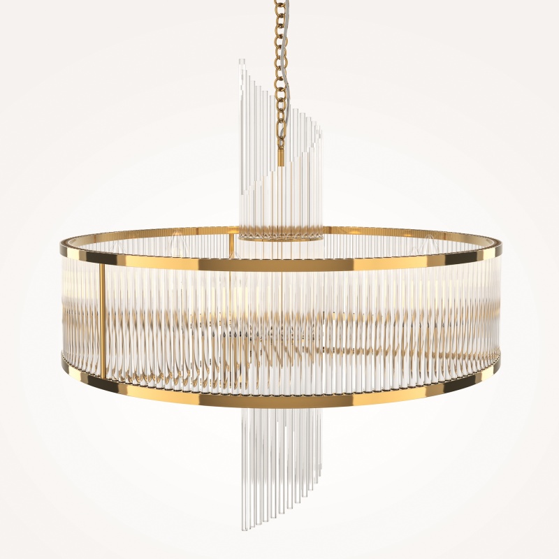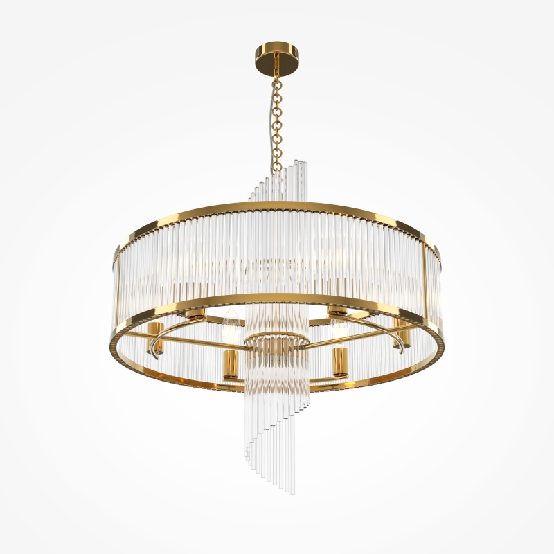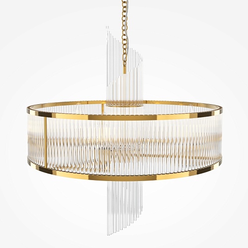 Материал арматуры - металл, цвет - золото. Декоративный элемент из прозрачного стекла в форме рельефных трубок. Цоколь Е14. Лампы в комплект не входят.