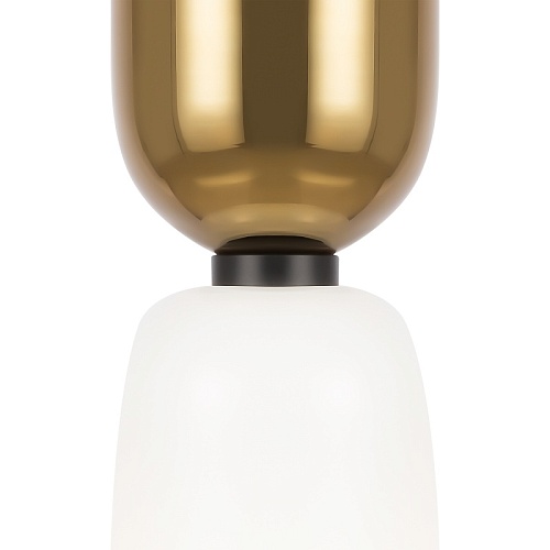 Металлическая арматура, цвет - черный. Светильники стилизованы под форму песочных часов с обтекаемой формой. Керамические элементы с глянцеовй глазурью. Подвесные светильники с плафонами из белой керамики с прозрачным, черно-белым, золото-белым и белым стеклом. Регулируемая высота подвесных светильников.