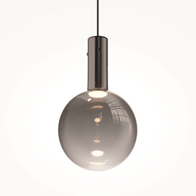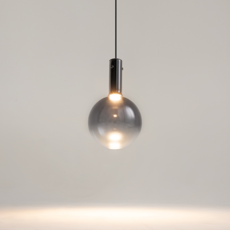 Металлическая арматура, цвет - черный, белый. Выдувной плафон-шар из стекла с вытянутым цилиндрическим основанием в трех цветах: дымчато-черный, туманно-белый, бежево-коньячный. LED-источник света в основании плафона. Цветовая температура 3000К. Два диаметра плафонов и регулируемая длина проводов для создания разнообразных композиций.