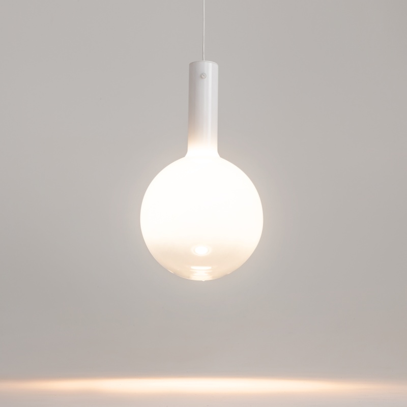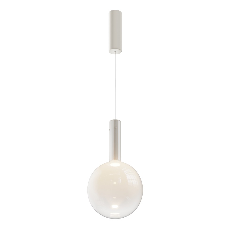 Металлическая арматура, цвет - черный, белый. Выдувной плафон-шар из стекла с вытянутым цилиндрическим основанием в трех цветах: дымчато-черный, туманно-белый, бежево-коньячный. LED-источник света в основании плафона. Цветовая температура 3000К. Два диаметра плафонов и регулируемая длина проводов для создания разнообразных композиций.