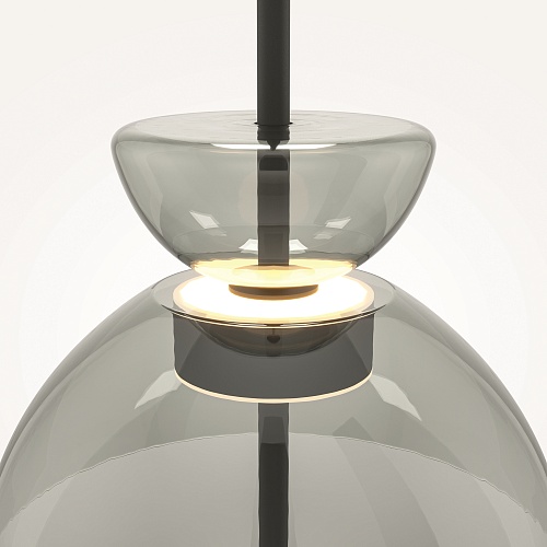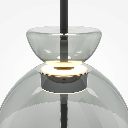 Материал арматуры - металл, цвет - черный. Уникальный дизайн минималистичных плафонов из стекла в трех цветах – дымчатый, прозрачный и серый. LED источник света, цветовая температура - 3000К. Регулируемая длина тросов.