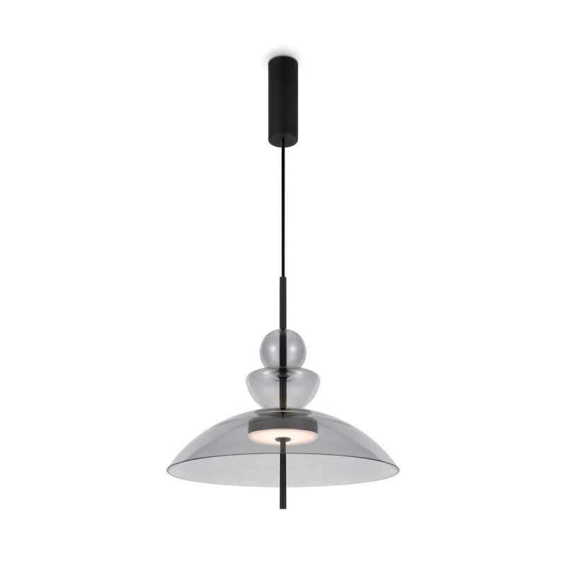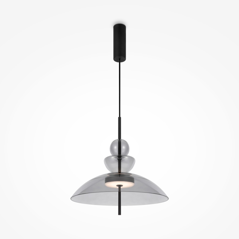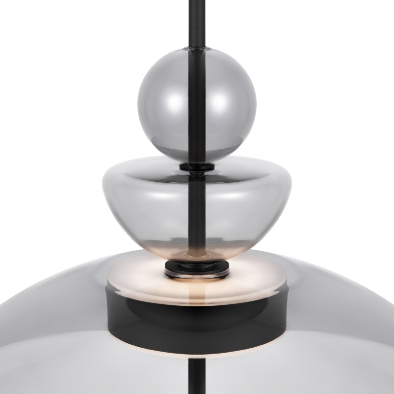 Материал арматуры - металл, цвет - черный. Уникальный дизайн минималистичных плафонов из стекла в трех цветах – дымчатый, прозрачный и серый. LED источник света, цветовая температура - 3000К. Регулируемая длина тросов.