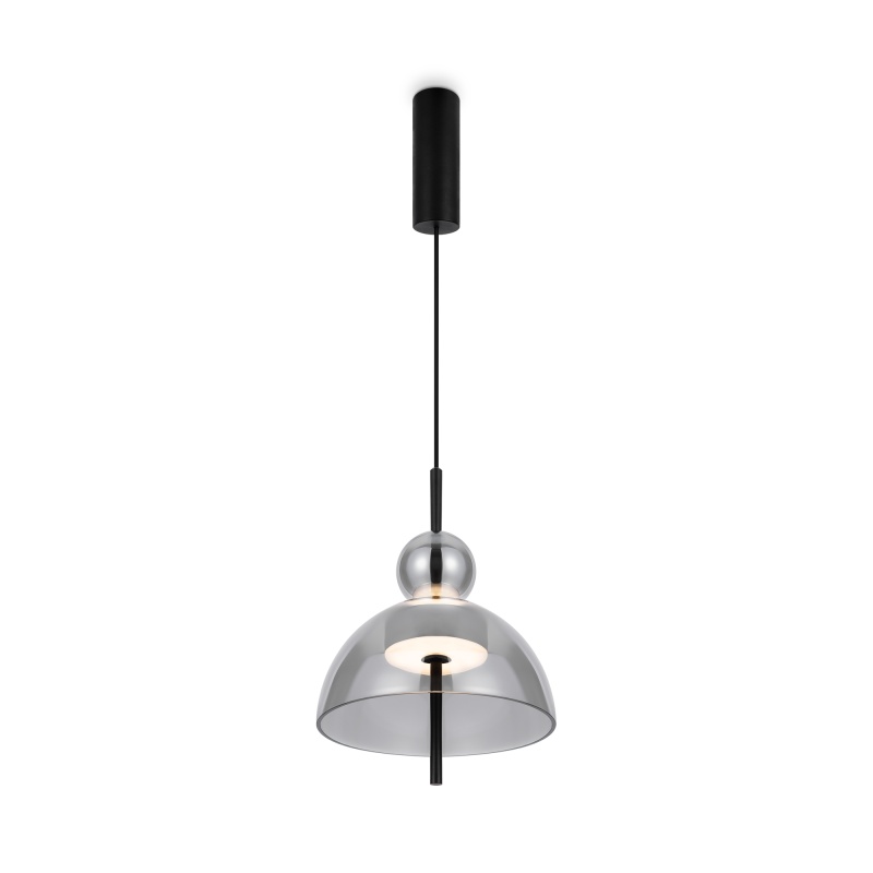 Материал арматуры - металл, цвет - черный. Уникальный дизайн минималистичных плафонов из стекла в трех цветах – дымчатый, прозрачный и серый. LED источник света, цветовая температура - 3000К. Регулируемая длина тросов.