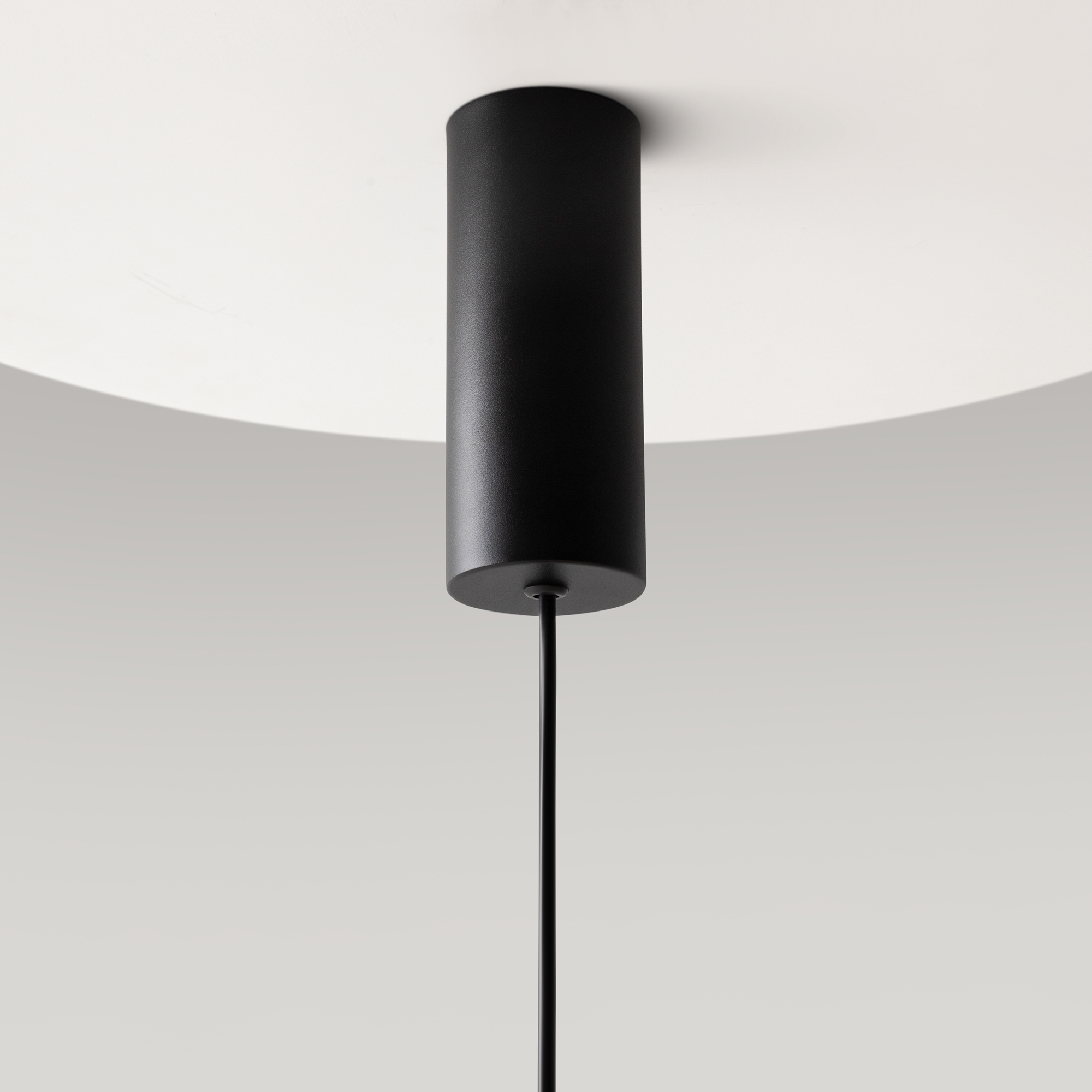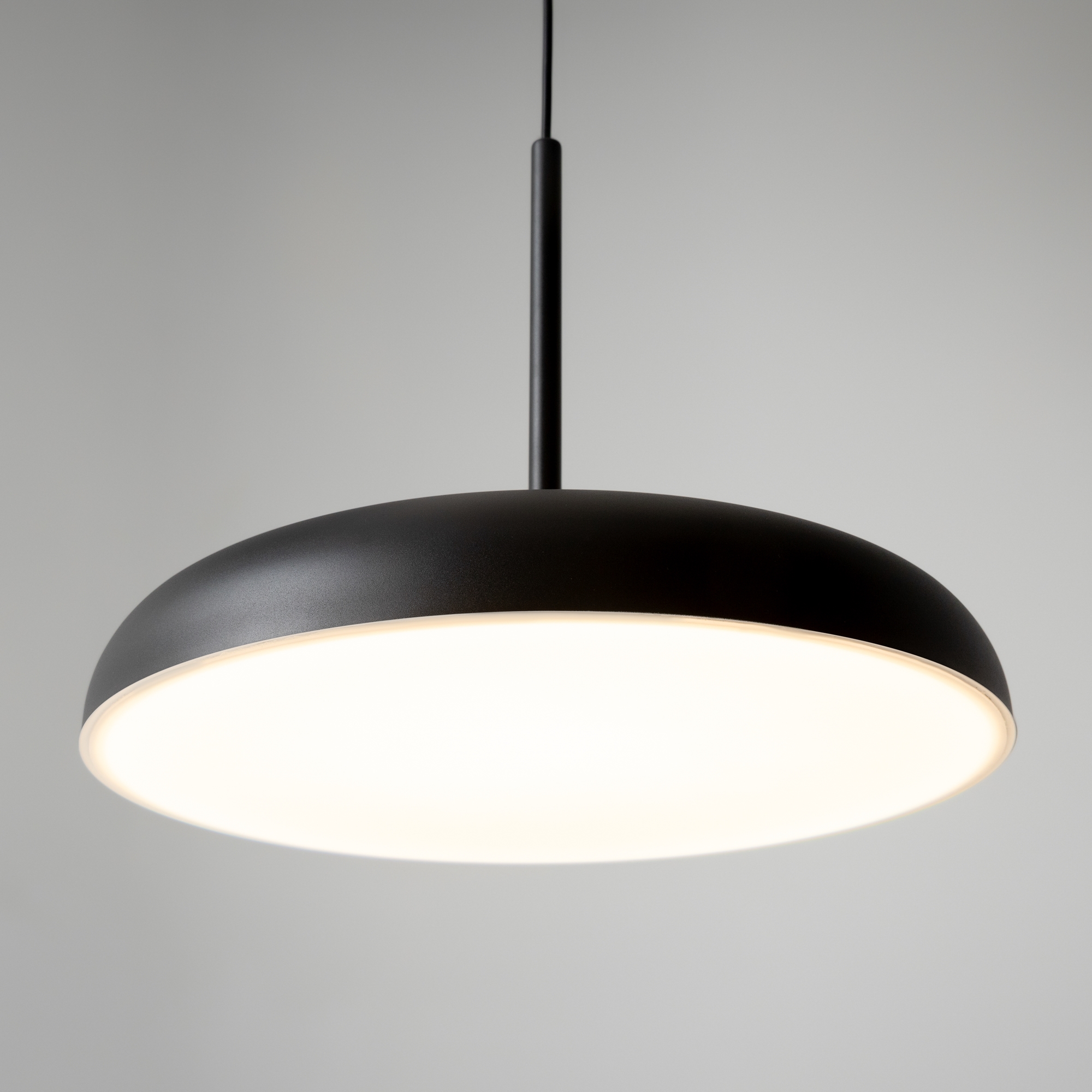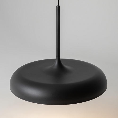 Арматура и плафон из металла,цвета - черный, белый, серый. Шагреневая поверхность - предотвращает следы от рук и пыли. Белый матовый рассеиватель из акрила хорошо пропускает свет, предотвращает слепящий эффект. Регулируемая длина провода - до 3 метров. LED-источник света. Цветовая температура 3000К.