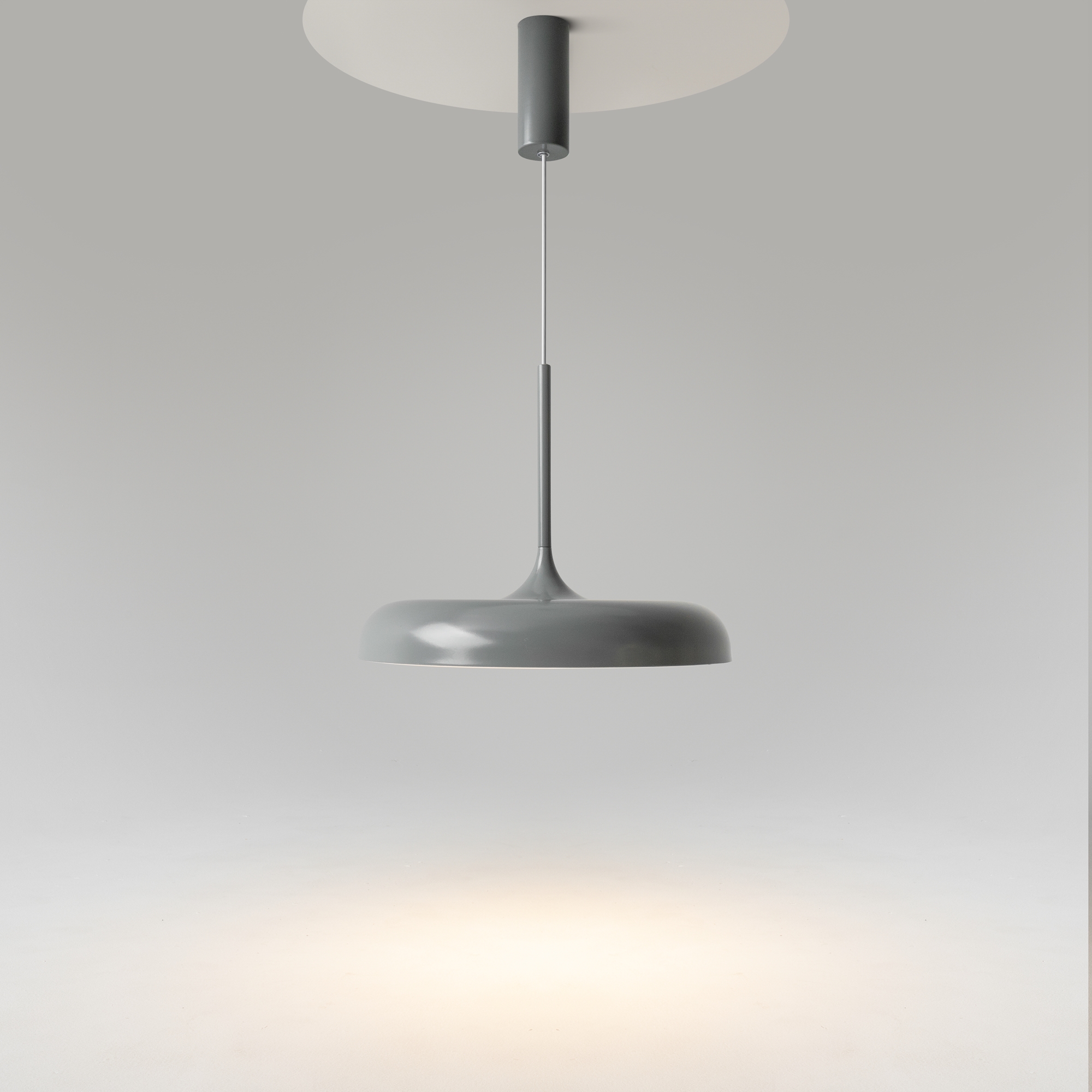 Арматура и плафон из металла,цвета - черный, белый, серый. Шагреневая поверхность - предотвращает следы от рук и пыли. Белый матовый рассеиватель из акрила хорошо пропускает свет, предотвращает слепящий эффект. Регулируемая длина провода - до 3 метров. LED-источник света. Цветовая температура 3000К.