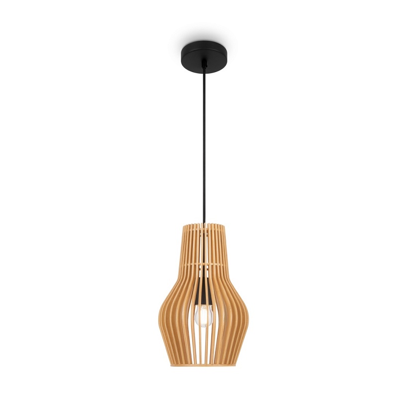 Материал арматуры – металл, цвет – черный. Абажур – 5-ти слойная фанера бежевого оттенка, покрытая специальным ла- ком. Тканевый черный провод. Регулируемая высота. Простые лаконичные форма, природные материалы. Цоколь E27.