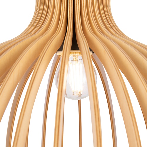 Материал арматуры – металл, цвет – черный. Абажур – 5-ти слойная фанера бежевого оттенка, покрытая специальным ла- ком. Тканевый черный провод. Регулируемая высота. Простые лаконичные форма, природные материалы. Цоколь E27.