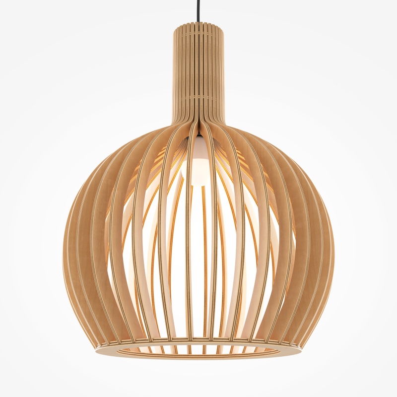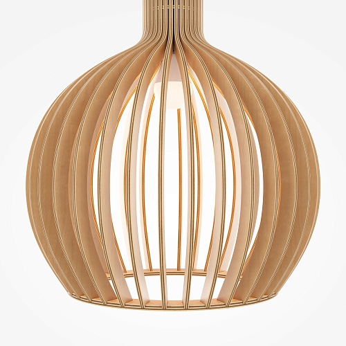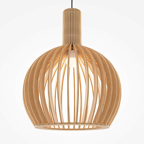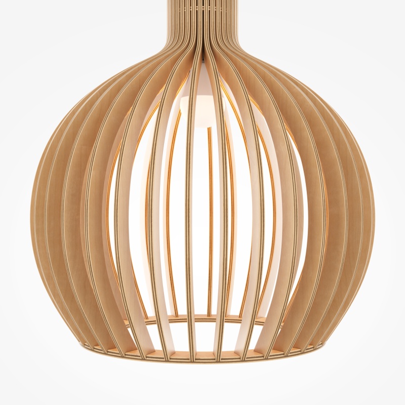 Материал арматуры – металл, цвет – черный. Абажур – 5-ти слойная фанера бежевого оттенка, покрытая специальным ла- ком. Тканевый черный провод. Регулируемая высота. Простые лаконичные форма, природные материалы. Цоколь E27.