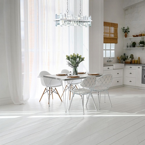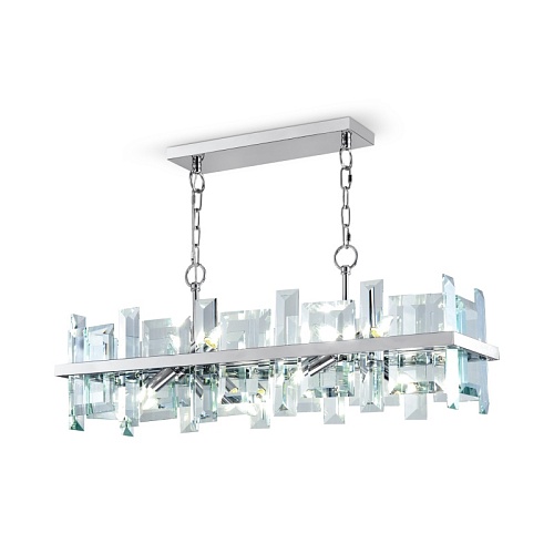 Арматура из металла, цвет – хром. Плафон составляют пластины из прозрачного оптического стекла. Металлический каркас плафона окрашен в тон арматуре. Высота подвесных моделелей регулируется.
