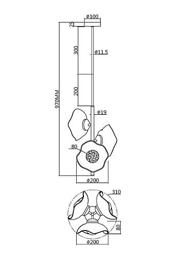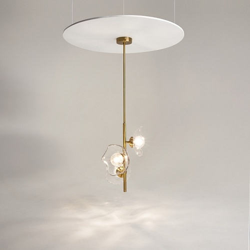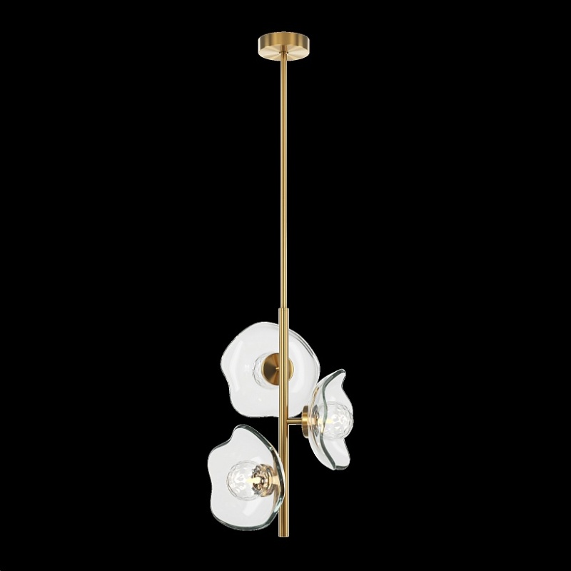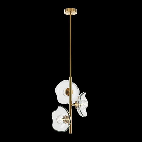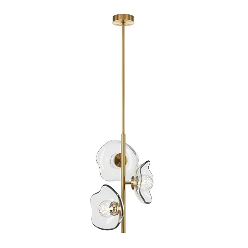 Арматура - металл, цвет - латунь. Плафоны-соцветия из литого стекла в плавных формах. Эффектные световые блики на плавных рельефах плафона. Источник света - лампа с цоколем G9.