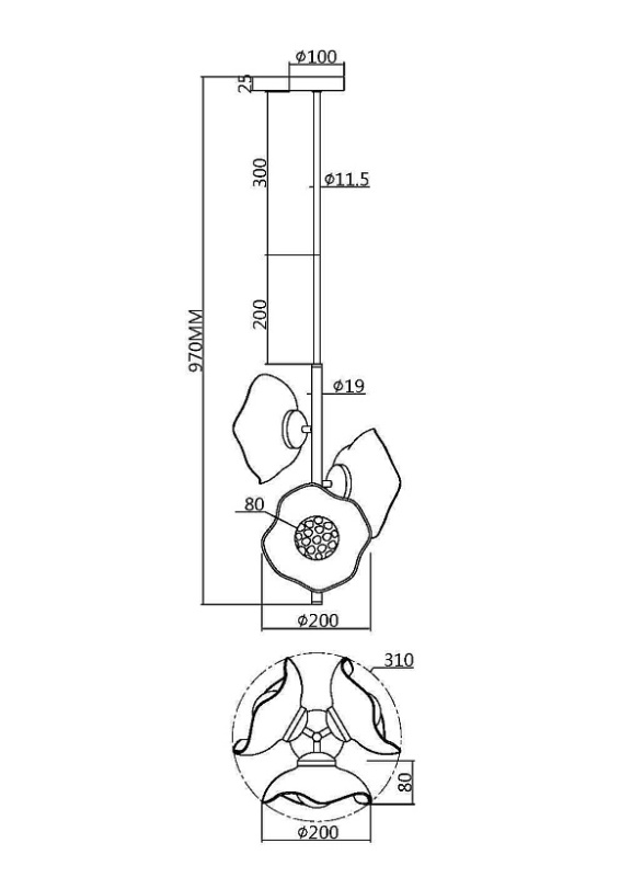 • Диаметр потолочной чаши (мм)