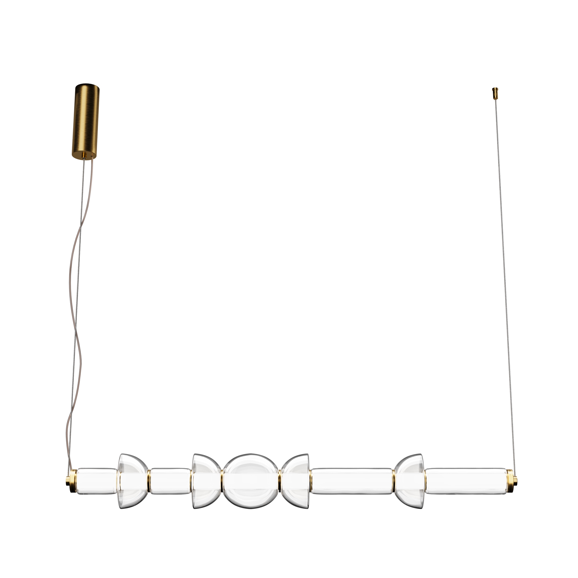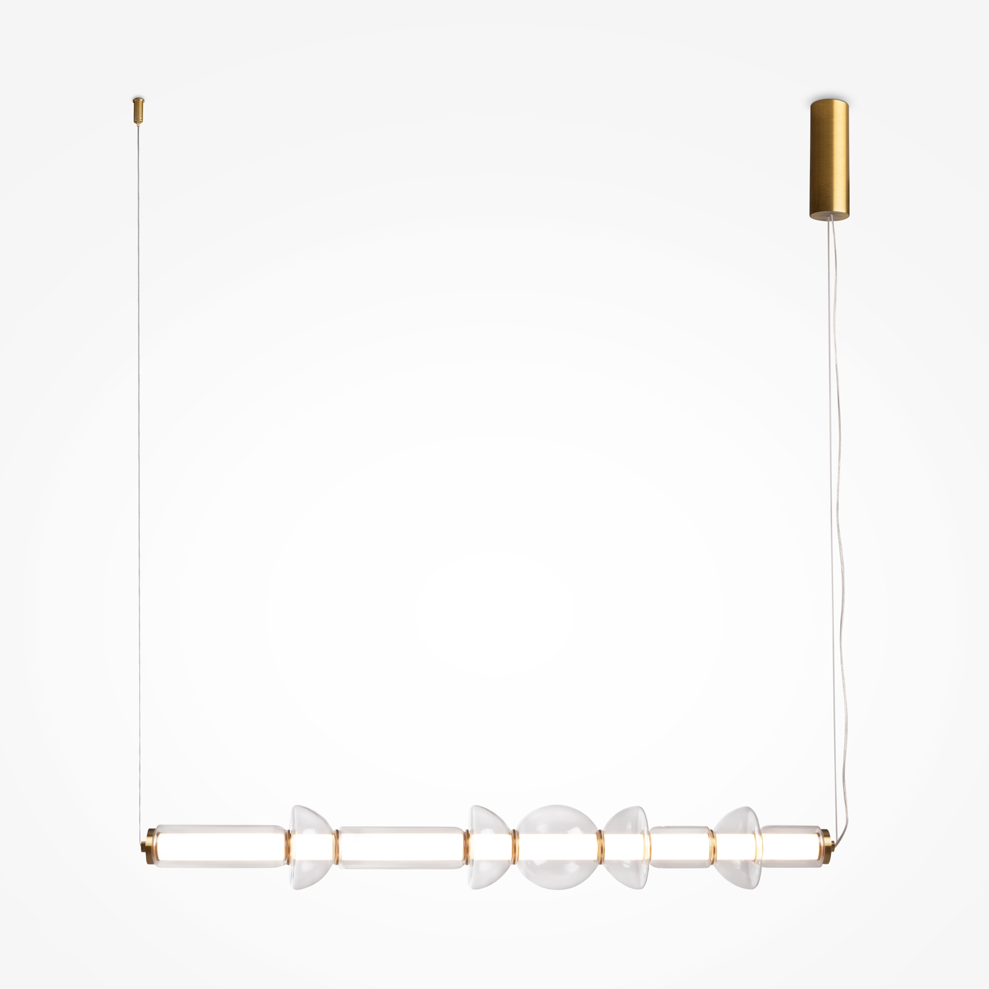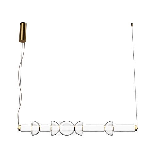 Арматура - металл, цвет - черный, латунь. Плафоны - прозрачное стекло. Крепление 2в1 - горизонтальное и вертикальное. Конструкция и дизайн идеальны для составления композиций. Силуэты светильника напоминают образ фантастических космических кораблей. Световой поток - 4800 Лм, для основного освещения. LED-источник света. Цветовая температура - 3000К.