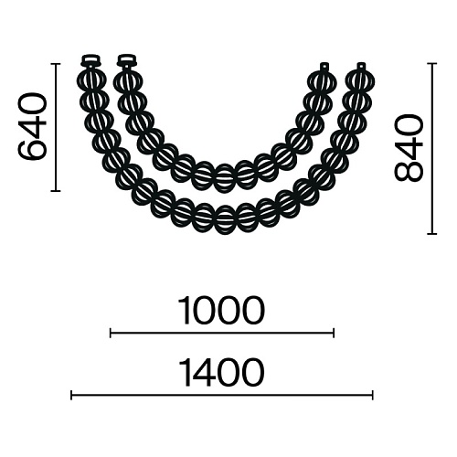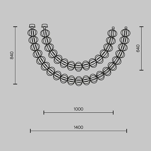 Арматура - металл, цвет - золото. Декоративные проволочные плафоны-сферы - ручная работа. Горизонтальные подвесы в двух вариатах монтажа - накладном и скрытом. Све товой элемент - силиконоваая трубка с LED-источником. Цветовая температура 3000К.
