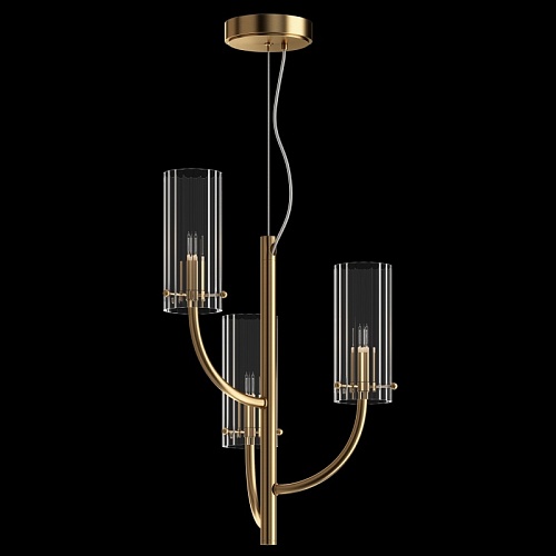 Дизайн в стиле эпохи mid-century modern. Cложная геометрия металлической арматуры, гальванизированной в благородный оттенок латуни. Рифленая фактура плафонов из выдувного стекла. Источник света - лампа с цоколем G9. Лампы в комплект не входят.