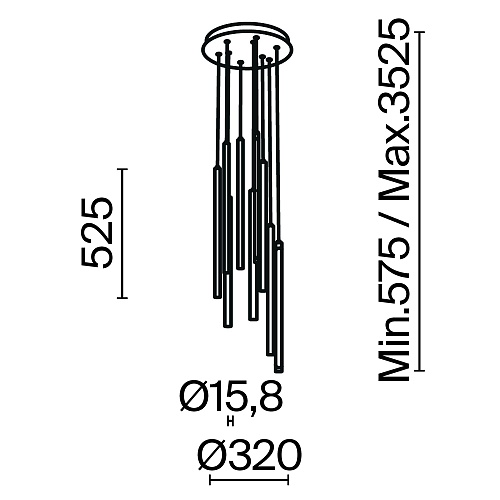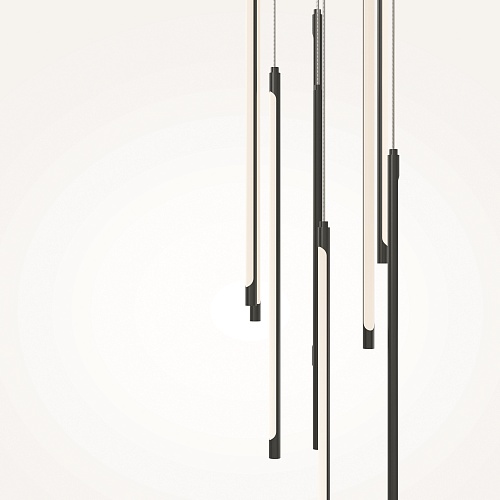 Материал арматуры - алюминий, цвет - черный, латунь. Изящные металлические «струны» в цвет арматуры со встроенным световым модулем прикрыты белым акриловым рассеивателем. Серия для акцентного и дополнительного освещения. Длина подвесных моделей регулируется. LED-источник света. У подвесных светильников есть функция диммирования. Цветовая температура 3000К.