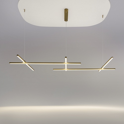 Металлическая арматура, цвет: золото. Встроенный LED-источник света. Рассеиватель из силикона. Цветовая температура 3000К. Подвесные светильники имеют регулируемый провод длиной 3 метра для помещений с высокими потолками.