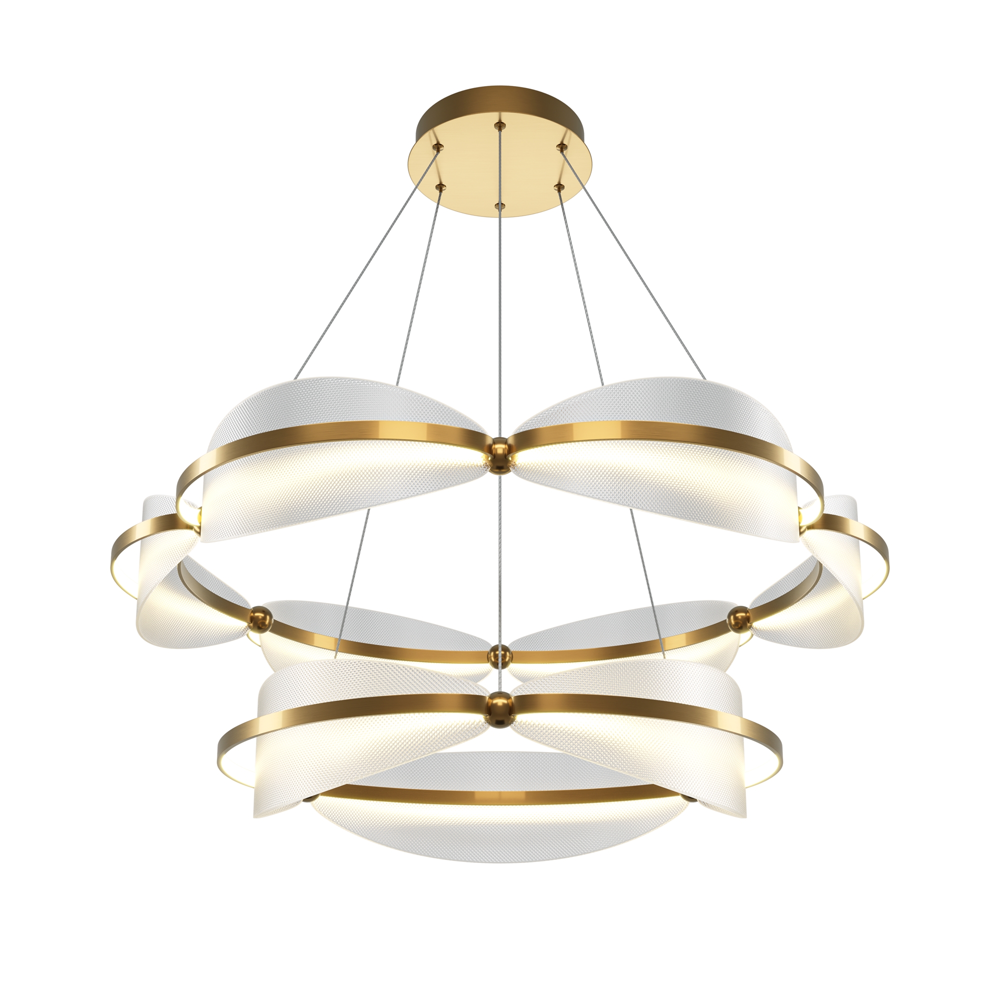 Материал арматуры - металл, цвет - латунь. Декоративные элементы из прозрачного фактурного акрила. LED источник света с цветовой температурой 3000К. Подвесные светильники — регулируемый провод длиной 3 метра. Настольная и напольная модель с функцией диммирования.