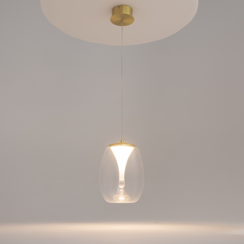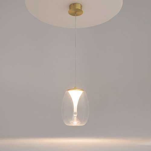 Цвет арматуры - сатинированное золото. Плафоны из двойного стекла. Внешние плафоны в двух цветах: прозрачный и гальванизированный серый с эффектным градиентом - придают освещению глубину и насыщенность. LED источник света с цветовой температурой 3000K. Провод подвесных светильников регулируемый - длина 3 метра. Идеальны для помещений с высокими потолками.