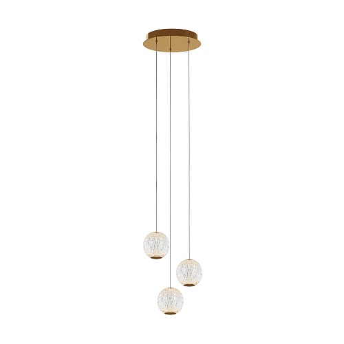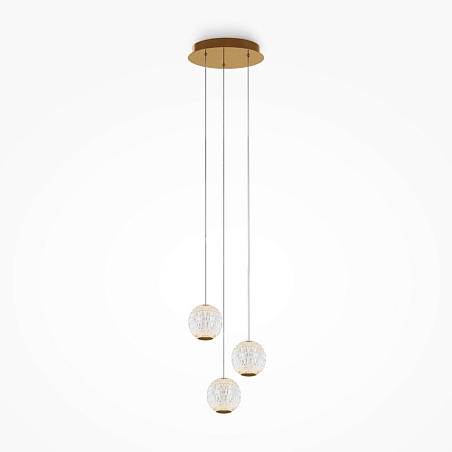 Цвет арматуры — латунь, плафоны из прозрачного акрила. Подвесной светильник с прочными и легкими плафонами из акрилового стекла снаб жен встроенным LED-источником света. LED-модуль дает теплый свет с цветовой температурой 3000К. Длина провода — 3 метра, ее можно регулировать для установки в помещении с высокими потолками.