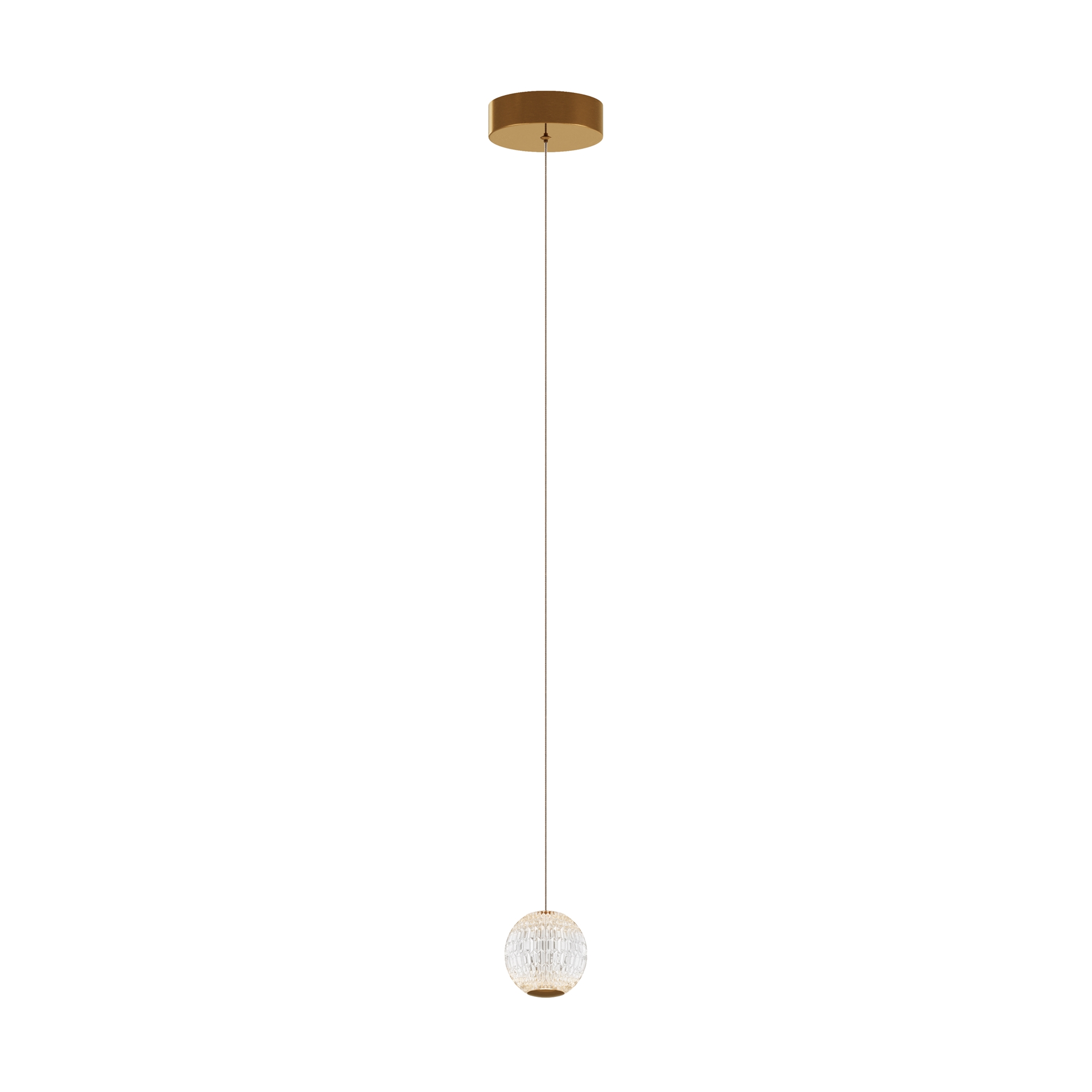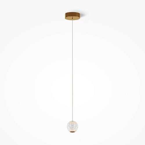 Цвет арматуры — латунь, плафоны из прозрачного акрила. Подвесной светильник с прочными и легкими плафонами из акрилового стекла снаб жен встроенным LED-источником света. LED-модуль дает теплый свет с цветовой температурой 3000К. Длина провода — 3 метра, ее можно регулировать для установки в помещении с высокими потолками.