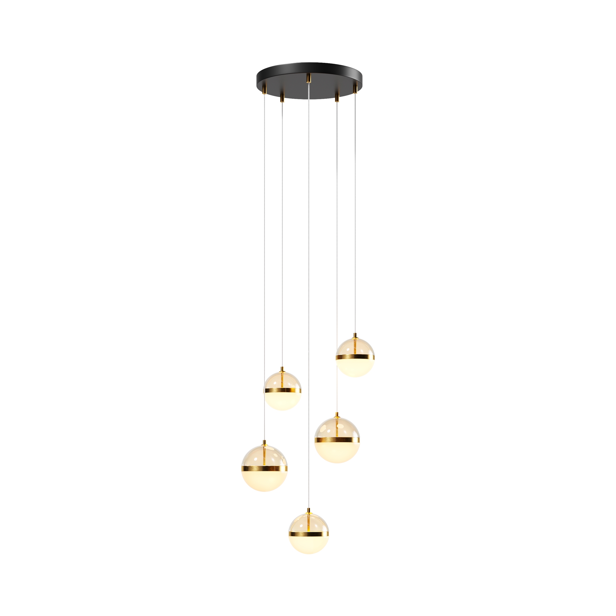 Черная потолочная чаша дополнена финишным антибликовым покрытием sandy, декоративный элемент плафона выполнен из металла цвета сатинированной латуни. Сочетание двух фактурных стекол в плафоне: нижняя полусфера из матового белого стекла для создания мягкого рассеянного света, верхняя часть плафона - из тонированного янтарного стекла. Внутри установлен LED-модуль, создающий равномерное освещение, направленное вверх и вниз. Цветовая температура – 3000К, угол рассеивания — 120°.