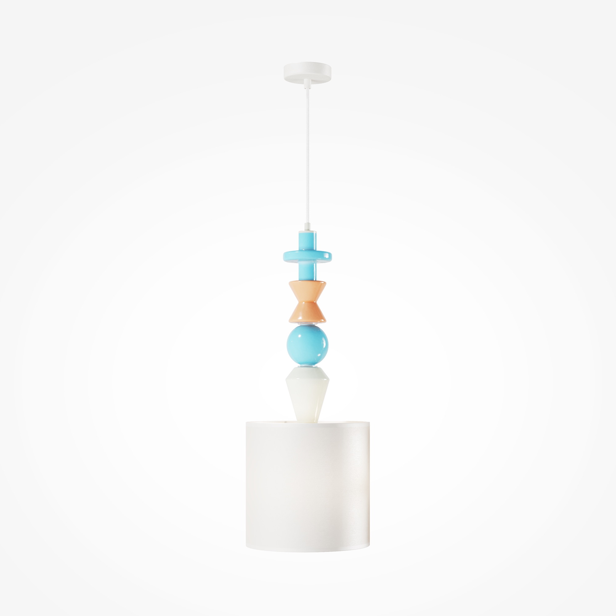 Арматура из металла, цвет - белый. Абажур выполнен из натуральной ткани, цветные декоративные элементы в пастельных тонах — из керамики. Белый абажур имеет классическую цилиндрическую форму, ткань дает мягкий рассеянный свет. Светильники комплектуются сменными лампами с цоколем Е27 (не входят в комплект). Провод подвесного светильника можно регулировать по длине. Декор напоминает стилистику крафтового искусства