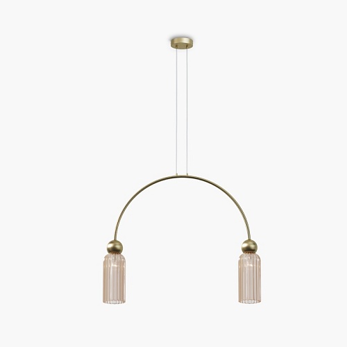 Металлическая арматура в цвете золота. Плафоны стеклянные нескольких цветов: коньячный, дымчатый, белый, серый. Источник света: цоколь Е14. Высота регулируется сегментами штанги или с помощью трехметрового провода. Серия применима в помещениях с высокими потолками. Поверхность стеклянных плафонов рифленая, усиливающая световые эффекты.