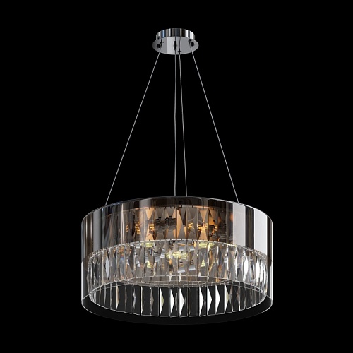 Арматура из нержавеющей стали в двух оттенках: хром, золото. Плафон из выду вного стекла, внутри – хрустальные подвесы. Часть плафона с зеркальным покры тием в тон арматуре. Цоколь Е14.