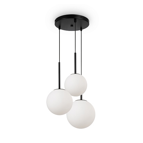 Материал арматуры – металл, цвет - золото, белый, черный. Округлые плафоны из матового белого стекла. Универсальные формы, минималистичный дизайн. Цоколь - E14. Лампы не входят в комплект. Регулируемая высота подвесных светильников.