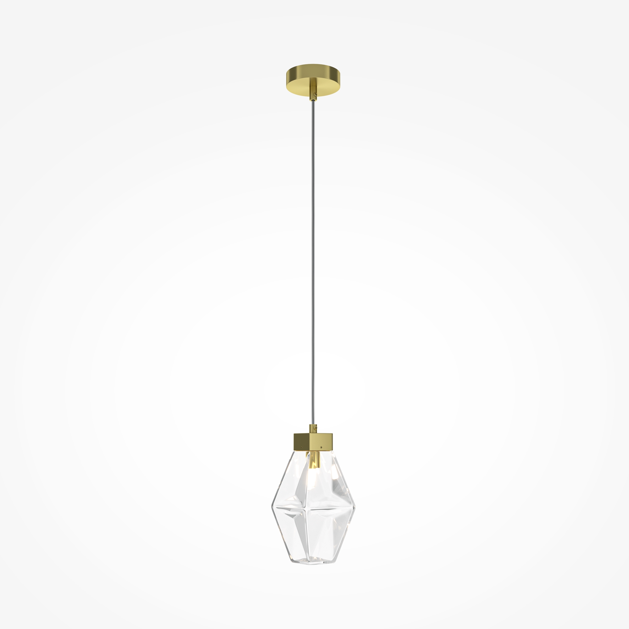 Металлическая арматура. Цвета — золото. Плафоны – прозрачное литое стекло. Эффектный дизайн с крупными гранями. Регулируемая высота. Источник света — лампа с цоколем G9.