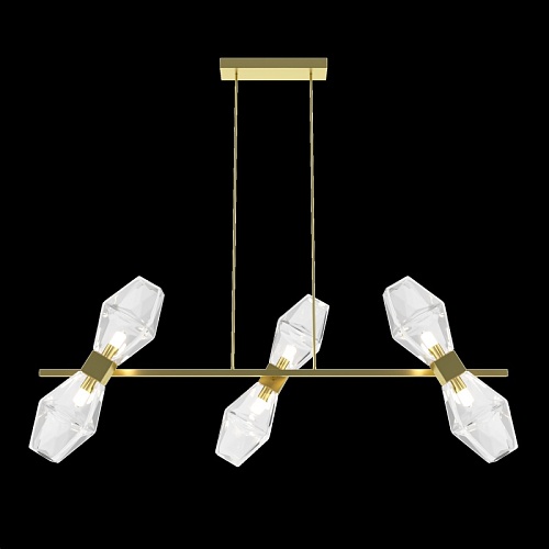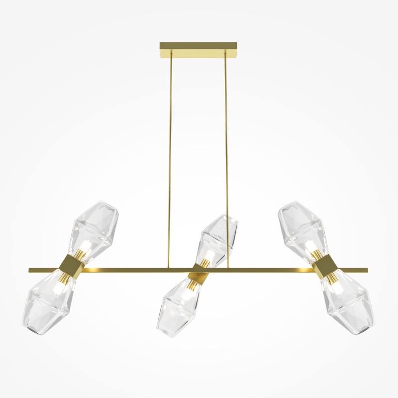 Металлическая арматура. Цвета — золото. Плафоны – прозрачное литое стекло. Эффектный дизайн с крупными гранями. Регулируемая высота. Источник света — лампа с цоколем G9.