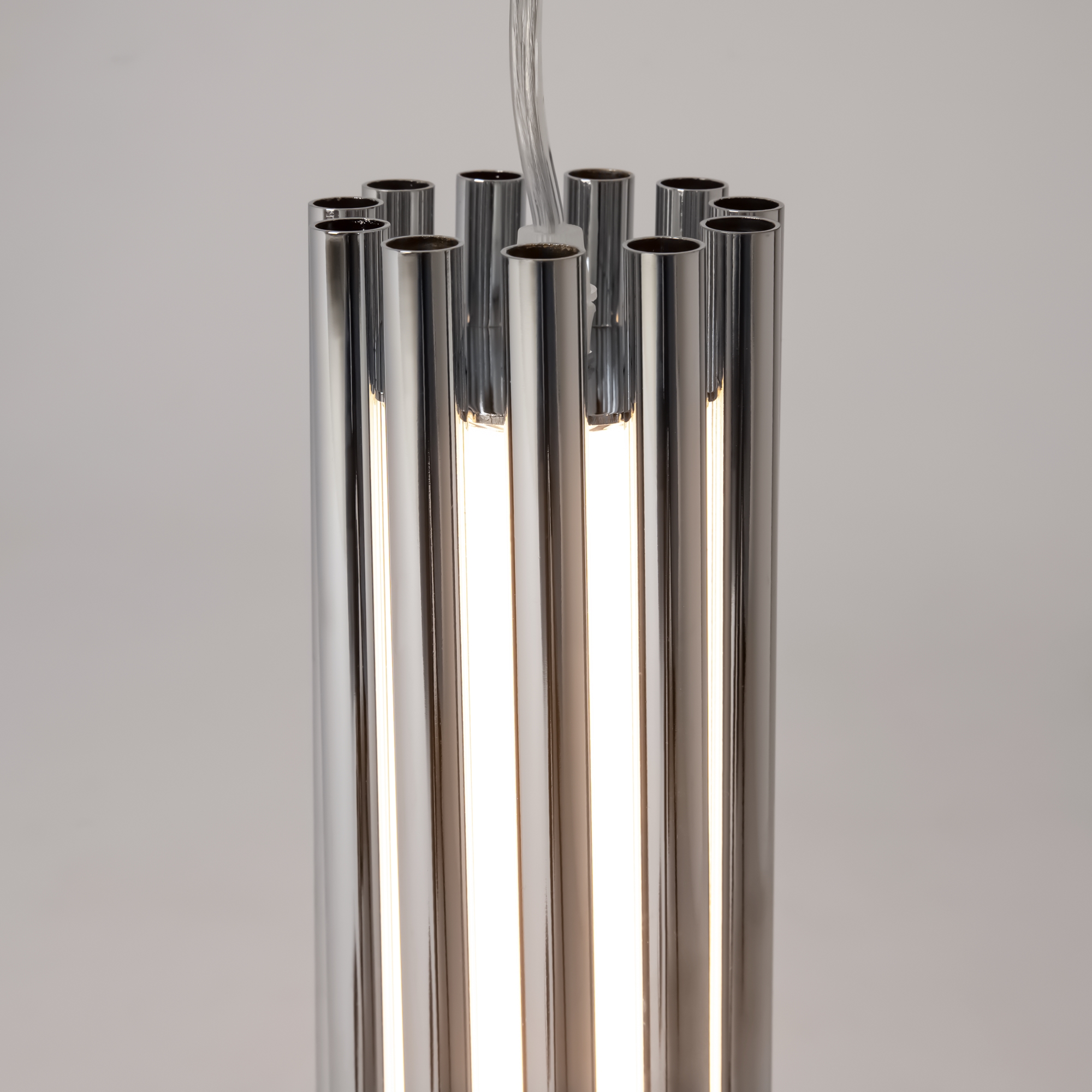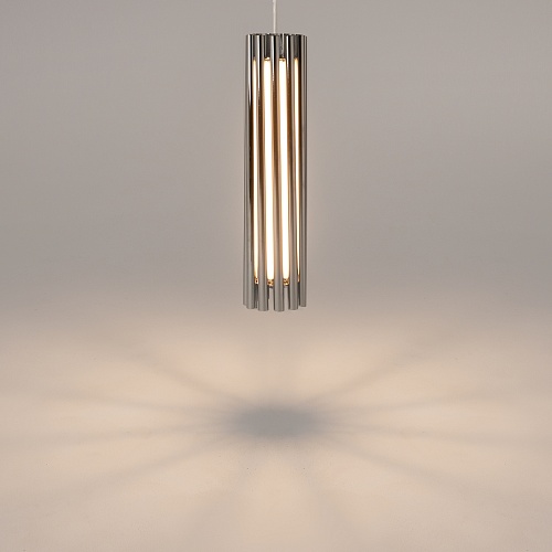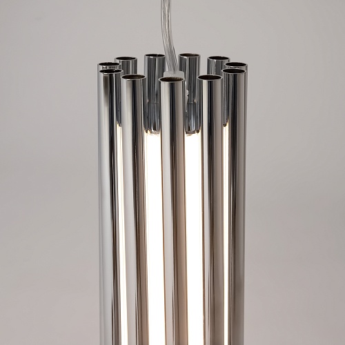 Алюминиевая арматура в двух оттенках: латунь, хром. Мягкий акриловый рассеиватель, плавное распределение света. Декор – металлические трубки в тон арматуре. LED-источник света, цветовая температура 3000К.