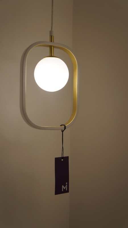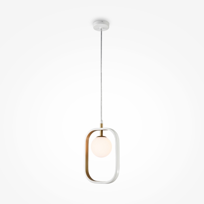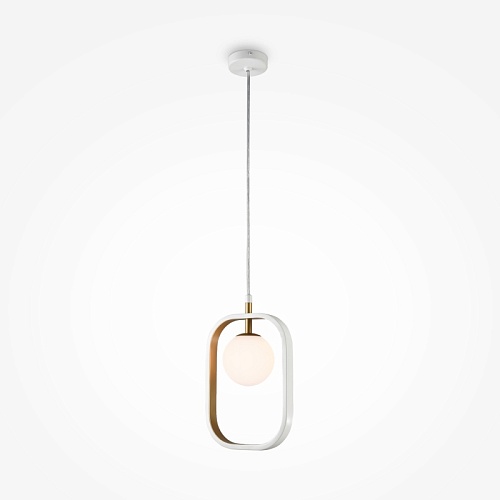 Металлическая арматура в комбинации двух оттенков: белый и серебро, белый и золото. Плафоны-сферы из выдувного стекла, цвет – белый. Регулируемая высота.