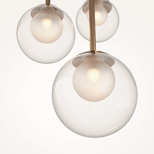 Материал арматуры – металл, цвет - золото, белый, черный. Округлые плафоны из матового белого стекла. Универсальные формы, минималистичный дизайн. Цоколь - E14. Лампы не входят в комплект. Регулируемая высота подвесных светильников.