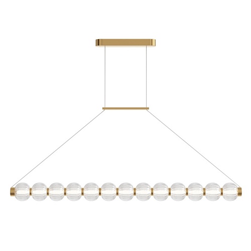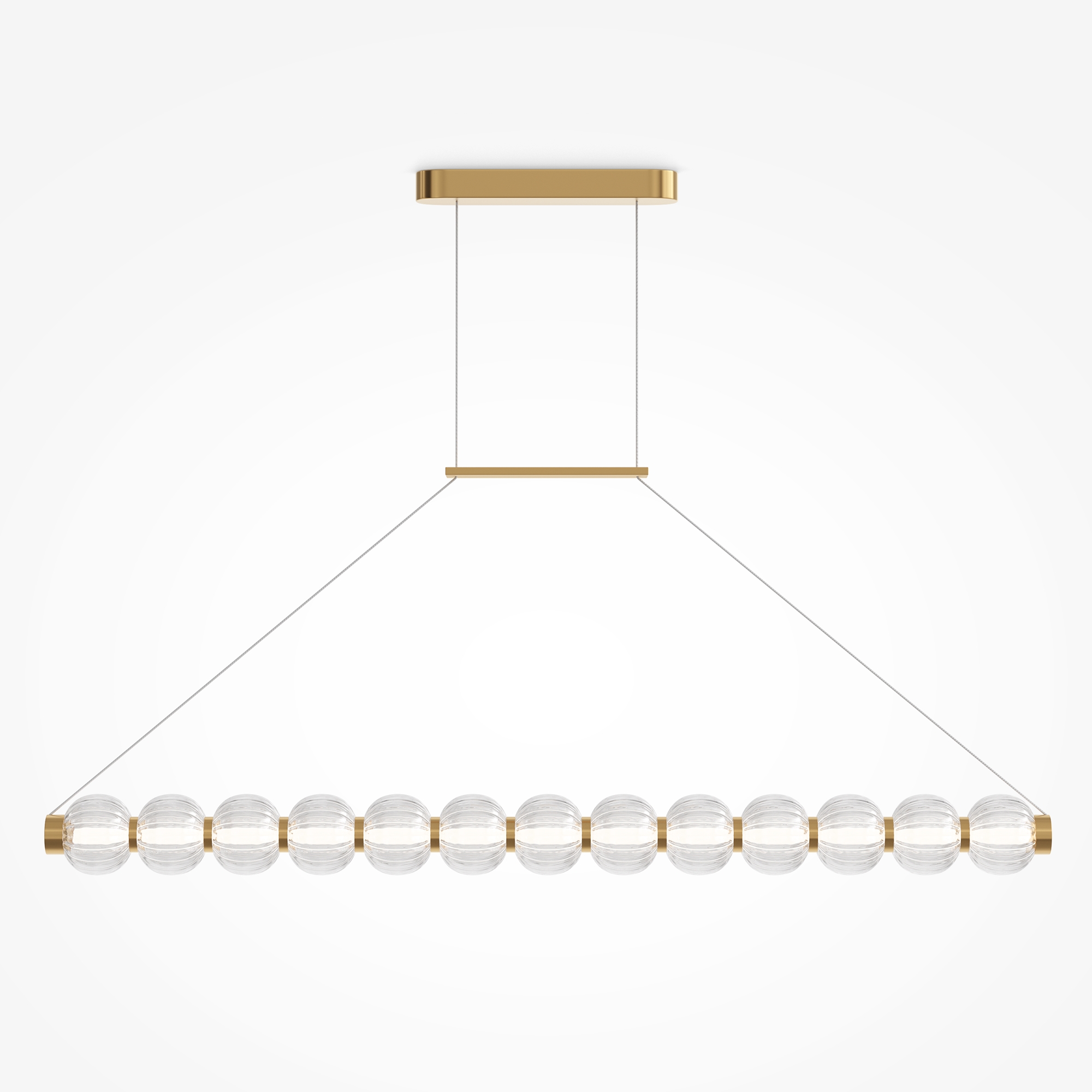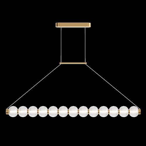 Арматура из металла, цвет – хром. Акцентный декор в виде рельефных сфер из литого стекла. Источник света – светодиодная лента – скрыта под акриловым рассеивателем. Регулируемая высота подвесных светильников.