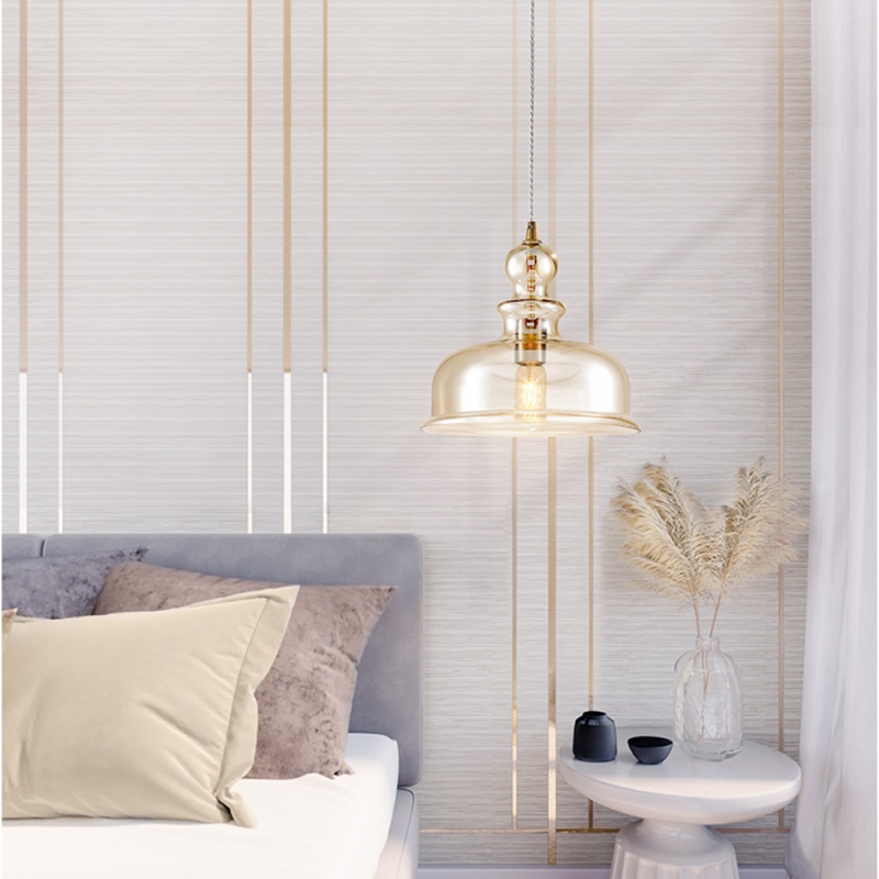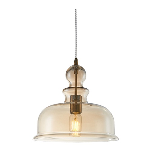 Арматура из металла, оттенок – бронза. Плафон из выдувного стекла в янтарном цвете. Витой провод в текстильной оплетке. Винтажная форма