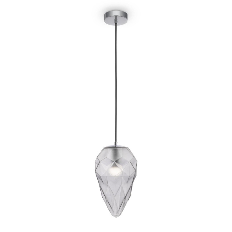 В образе светильников серии Globo сочетаются идеально четкие прямые линии и необычная форма. Многочисленные отражения света зачаровывают зрителя днем и еще больше ночью, при включенном освещении. Плафоны светильников изготовлены из стекла и представлены в голубом, розовом и сером цвете. Арматура сделана из металла. Высота светильников регулируется длиной шнура.